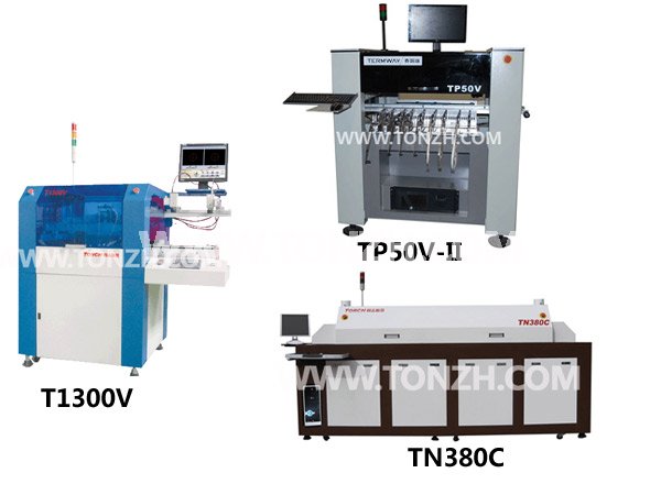 半自動視覺精密絲印機(jī)+ 全自動視覺多功能貼片機(jī)+節(jié)能高精密回流焊機(jī)